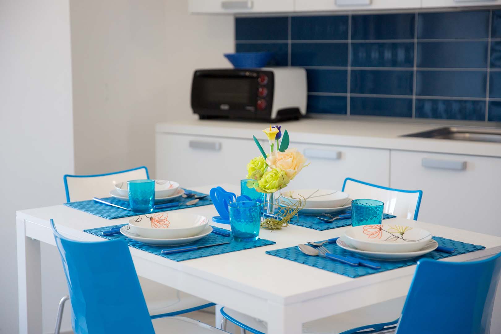 • Utensili da cucina: piatti, posate, bicchieri, tazze da latte, tazzine da caffè, moka, tris di pentole, mestoli, colapasta, insalatiera, cavatappi.