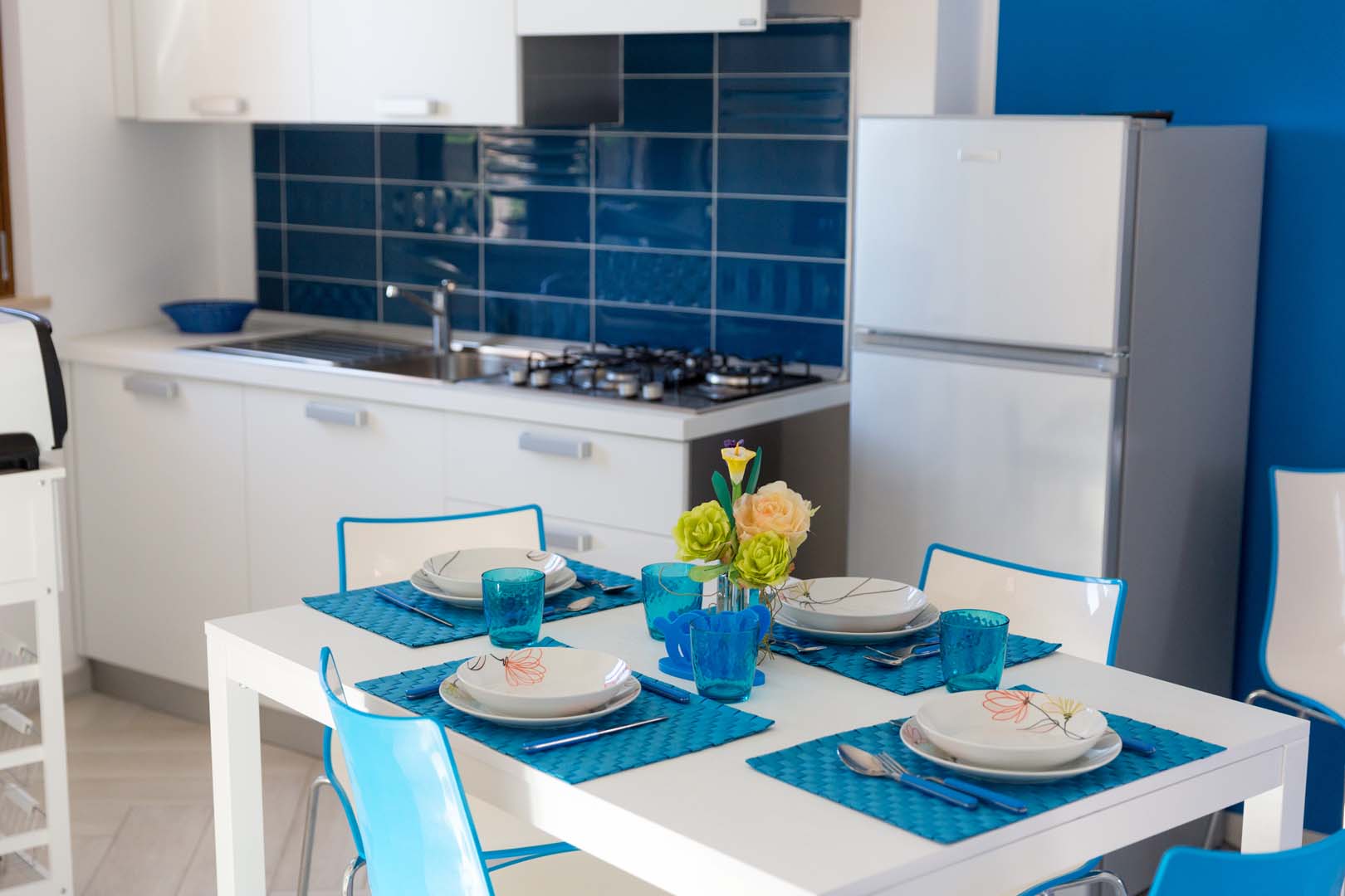 • Utensili da cucina: piatti, posate, bicchieri, tazze da latte, tazzine da caffè, moka, tris di pentole, mestoli, colapasta, insalatiera, cavatappi.
